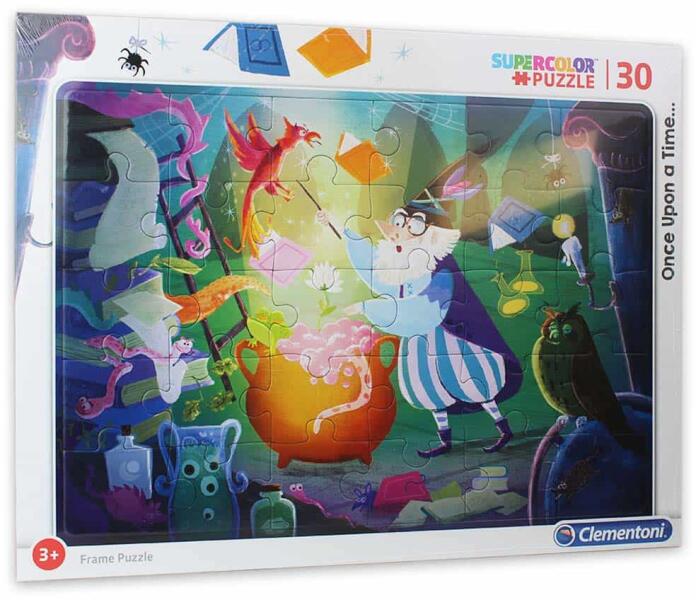 Egyszer volt, hol nem volt, volt egyszer egy hosszú szakállú varázsló, akit a Clementoni cég átalakított egy kirakóvá. Rakd össze a megfelelő varázslatot ezzel a 30 db-os, 38 x 30 cm-es kirakóval, de vigyázz, nehogy a rossz főzetet rakd össze. Egy keretbe rakható, fekvő tájolású puzzle három éves kor feletti fiúknak és lányoknak.