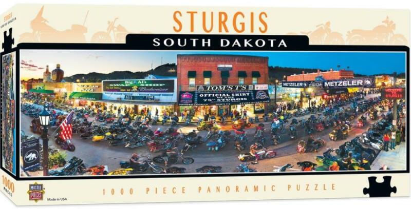 Az amerikai MasterPieces Puzzle Company gyönyörű és részletgazdag kirakókat gyárt különféle stílusokban és darabszámokban. A cég több világhírű márkával együttműködve az innováció és magas minőség mellett nagy gondot fordít az újrahasznosításra is. A MasterPieces 1000 db-os puzzle - Sturgis - South Dakota című képe a 75. éves Sturgis Motorcyle Rally ünnepi rend