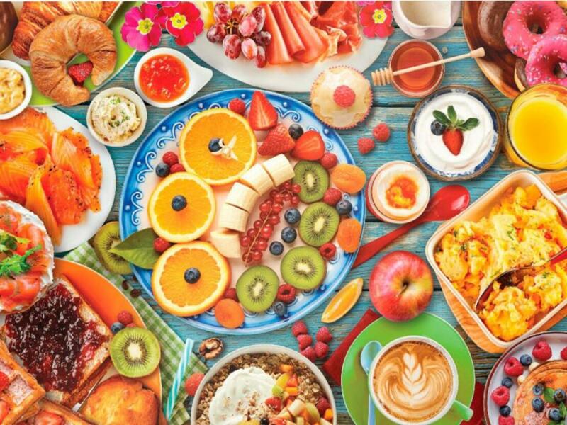 Az EuroGraphics 1000 db-os puzzle - Breakfast table című képen gazdagon terített reggelizőasztal tárul a szemünk elé. Választani is nehéz a sok finomság - croissant, palacsinta, gyümölcsök - közül. Az EuroGraphics gyártó nagy figyelmet fordít a környezettudatos működésre, úgy a termékeik előállításánál, mint a dolgozóik környezetbarát gondolkodásra való ösztön