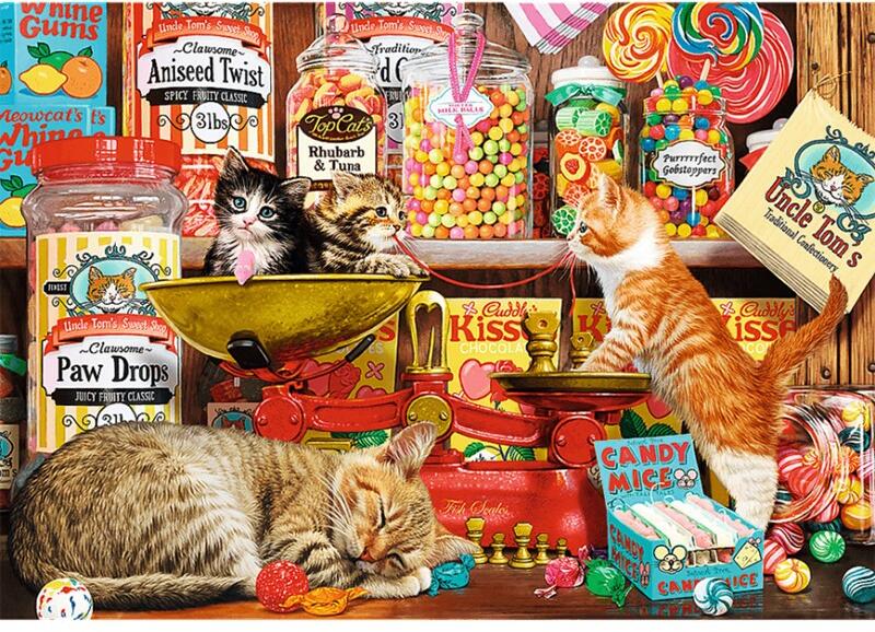 Cicák az édességboltban 1000db-os puzzle - Trefl Hivatalos magyarországi forgalmazótól. Leírás: Aki egy tündérien aranyos és varázslatosan színpompás kirakóra vágyik és még rajong is a cicákért, annak ez a Cicák az édességboltban 1000db-os puzzle biztosan elnyeri majd a tetszését. A Trefl kimagasló minőségű puzzle-jei gyönyörű, színpompás és éles nyomtatásuknak