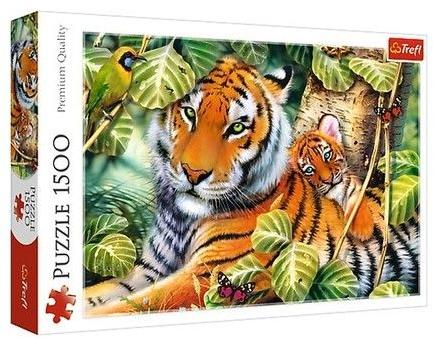 Két tigris 1500db-os puzzle - Trefl Hivatalos magyarországi forgalmazótól. Leírás: A tigrisek csodálatos és életerős nagymacskák, amelyekből sugárzik az erő, a büszkeség és szépség. Az ezerötszáz darabos puzzle egy erdőbe kalauzolja azt aki megpróbálkozik a kirakással. Az elkészült puzzle nem csak szép, hanem kiválóan hirdeti a tulajdonos ügyességét is. A Trefl puz