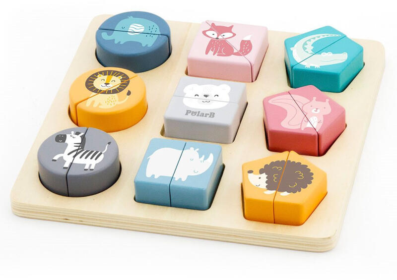 A Jegesmedve sorozat fából készült kirakós játékai ezért ideálisak lesznek a kezdéshez. A gyermeket nem fogja elkeseríteni a kirakós összerakása. A kirakós készlet 9 készletet tartalmaz, minden készletből más-más állat (többek között zebra, róka, medve, orrszarvú, sün, mókus, oroszlán, krokodil és elefánt) rakható össze. Minden készlet 2 darabból áll. Ezen kív