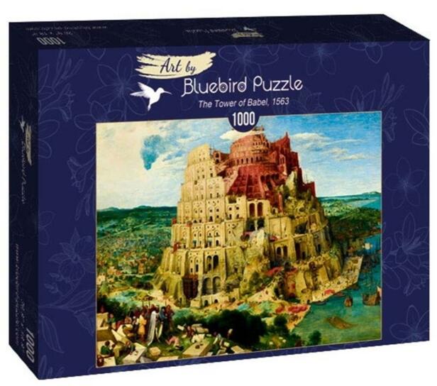 A francia Bluebird 2019 óta van jelen a kirakók világpiacán. Magas minőségű, környezettudatos technológiával készült, mégis megfizethető áron elérhető puzzle képei közt elsősorban művészi alkotások találhatók. Bluebird 2000 db-os puzzle - Pieter Bruegel the Elder - The Tower of Babel, idősebb Bruegel, Bábel tornya látható a képen kirakást követően.