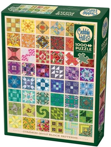 A kanadai Cobble Hill a nosztalgikus, színes, és mindemellett kiváló minőségű kirakókkal kívánja örvendetessé tenni a játék élményt kicsiknek és nagyoknak egyaránt. A Cobble Hill 1000 db-os puzzle - Common Quilt Blocks egy olyan képet ábrázol, amelyen különböző hagyományos paplanblokkok láthatók. A puzzle fő elemei a különböző geometriai formájú quiltblokkok, ame