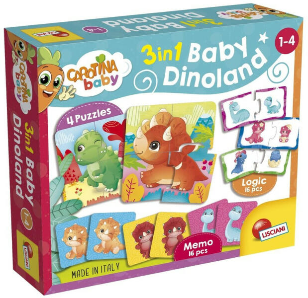 Carotina Baby - Dinoland 3 az 1-ben puzzle játék: Dinoszauruszos kaland a kis felfedezőknek! Fejleszd gyermeked memóriáját, logikai gondolkodását és kézügyességét a Carotina Baby Dinoland 3 az 1-ben puzzle játékkal! Ez a színes, aranyos dinoszauruszos játék 1 éves kortól rengeteg mókát és izgalmat tartogat a kis felfedezőknek. A játék három különböző játéklehetős