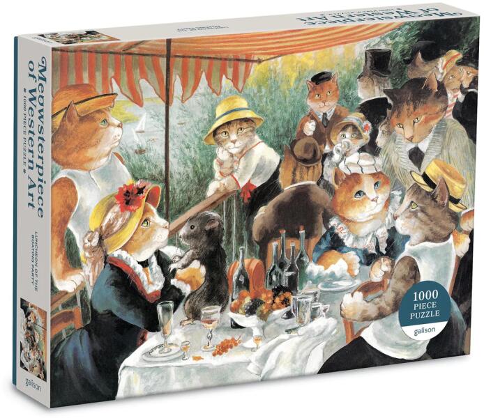 Macskások, humorérzékkel megáldva figyelem! A Luncheon of the Boating Party 1000 darabos kirakója Renoir, Az evezősök reggelije című képének macskás változata igazi különleges puzzle a Galisontól. A megszokott prémium minőség, tökéletes illeszkedés, és egy ritka kép.