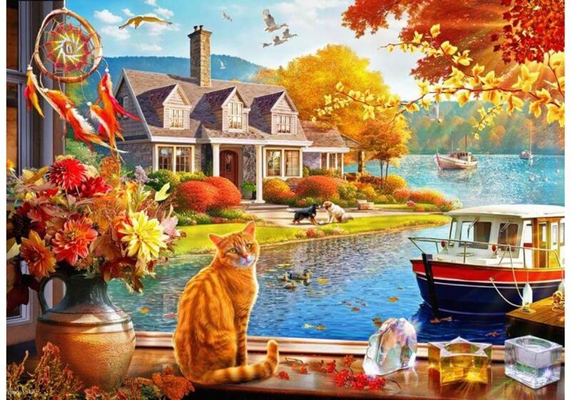 A francia Bluebird 2019 óta van jelen a kirakók világpiacán. Magas minőségű, környezettudatos technológiával készült, mégis megfizethető áron elérhető puzzle képei közt elsősorban művészi alkotások találhatók. Az 500 db-os Bluebird puzzle - Crisp Fall View című őszi hangulatú képén egy ablakból tekintünk ki a csodás tájra, előttünk egy csillogó víztükrű tó