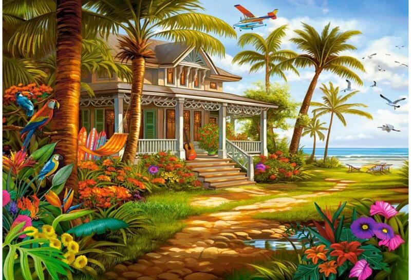 A Castorland kirakók sokszínűségükről ismertek és igen széles választékban kaphatóak. Hagyományos képi témáik mellett különlegesebb, városokat és nevezetességeket ábrázoló kirakókat is találunk kínálatukban. A Castorland 1500 db-os puzzle - Pálmák a parton című képen egy igazi tengerparti idill tárul elénk: egy gyönyörű ház pálmafákkal körülvéve, szörfde