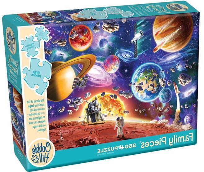 Co bble Hill Family puzzle , egy kirakó az egész családnak! A puzzle egyaránt tartalmaz nagy, közepes és kicsi darabokat, így igazán egyedülálló élményt nyújt mindenkinek. Ideális kicsiknek és nagyoknak, illetve azoknak, akik ritkán kirakóznak. A Cobble Hill 350 db-os Family puzzle - Space Travels kirakón egy űrbeli kalandos utazás látható. Feltűnik az összes nagyobb bolyg