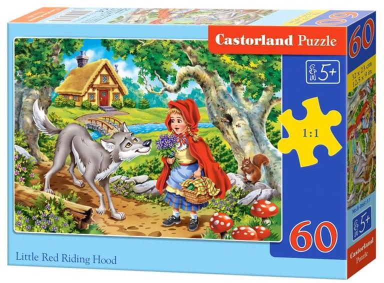 Piroska és a farkas története igazi klasszikus, amit minden gyermek izgatottan hallgat. Most egy puzzle formájában élhetjük át a történet izgalmait, méghozzá azt a pillanatot, amikor Piroska az erdőben találkozik a farkassal. Részletgazdag megjelenést és kidolgozást kapott, aminek köszönhetően csodás megjelenése van. A képet összesen 60 db-ból lehet kirakni, és ezeket a