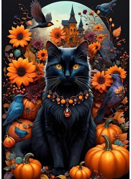 A francia Bluebird 2019 óta van jelen a kirakók világpiacán. Magas minőségű, környezettudatos technológiával készült, mégis megfizethető áron elérhető puzzle képei közt elsősorban művészi alkotások találhatók. Az 500 db-os Bluebird puzzle - Autumn Cat című őszi, halloween-i hangulatú képén egy fekete macskát láthatunk varjakkal és tökökkel körülvéve, a hátt
