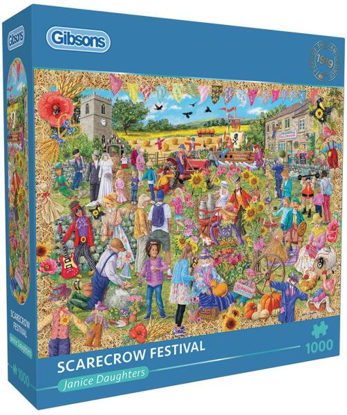 1000 darabos kirakó . Márka: Gibsons Művész: Janice Daughters Kirakott kép méret: 68 x 49 cm Doboz méret: 24 x 24 x 6 cm Eredeti cím: Scarecrow Festival GTIN: 5012269064223