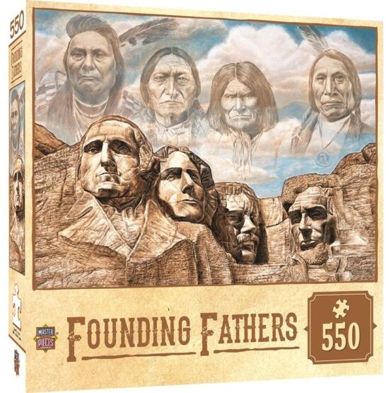 Az amerikai MasterPieces Puzzle Company gyönyörű és részletgazdag kirakókat gyárt különféle stílusokban és darabszámokban. A cég több világhírű márkával együttműködve az innováció és magas minőség mellett nagy gondot fordít az újrahasznosításra is. A MasterPieces 550 db-os puzzle - Founding Fathers című képen a Rushmore-hegy látható az ország indián és ameri
