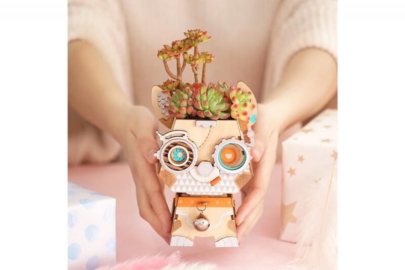 Nagyon könnyen összeszerelhető háromdimenziós puzzle virágtartó, melyben a szárazságtűrő növények, mint pl. kaktusz, gond nélkül eléldegélnek. A speciális lézervágásnak köszönhetően a puzzle darabok pontosan illeszkednek, ezért könnyű őket összerakni, ráadásul ragasztó sem kell hozzá. A különleges technológiának köszönhetően az egész készlet rendkívül pr
