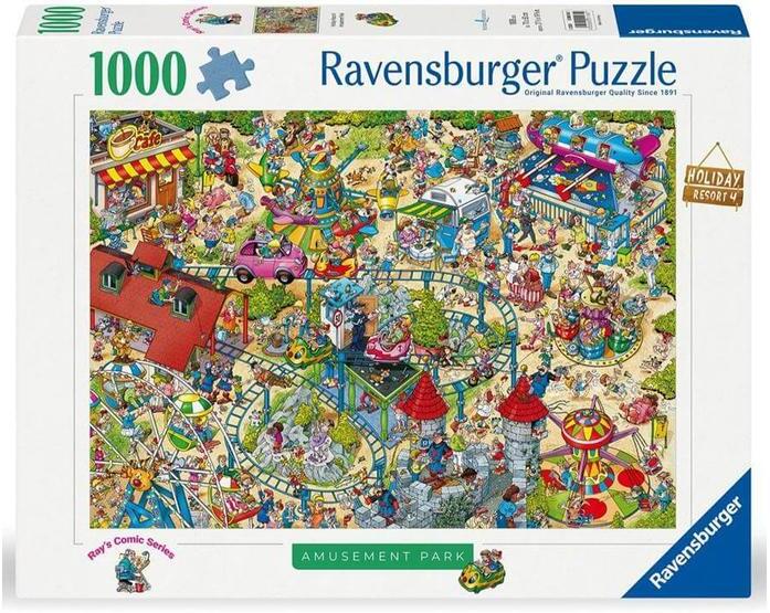 A Ravensburger a világ legnagyobb puzzle gyártója. Széles választékban kapható kirakói a minőséget és a sokszínűséget képviselik. A Ravensburger 1000 db-os - Vidámpark puzzle képén egy nyüzsgő vidámpark forgatagába csöppenünk, ahol rengeteg mókás, apró felfedeznivaló részlet vár ránk.