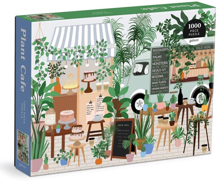 1000 darabos kirakó . Márka: Galison Művész: Frankie Penwill Kirakott kép méret: 50,8 x 68,5 cm Doboz méret: 21 x 28,6 x 5,1 cm Eredeti cím: Plant Cafe GTIN: 9780735371903