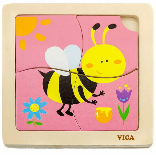 4 db-os méhecskés fa puzzle. Rakd össze a képet a darabokból. A puzzle játékok nem csak fejlesztik a memóriát, a megfigyelő és koncentrációs képességet, de türelemre és kitartásra is tanítanak. Mérete 15 x 15 cm.