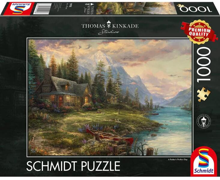 Schmidt - kiváló minőségű, német gyártmányú, 1000 darabos festmény puzzle. Thomas Kinkade: Hometown morning/ Morgen in der kleinen Stadt Thomas Kinkade alkotásán még az esős kisvárosi reggel is remek hangulatot áraszt, köszönhetően többek között a "fények játékának". Thomas Kinkade amerikai festőművész, önmagát "a Fény festőjeként" jellemzi. Kinkade egy Placervill