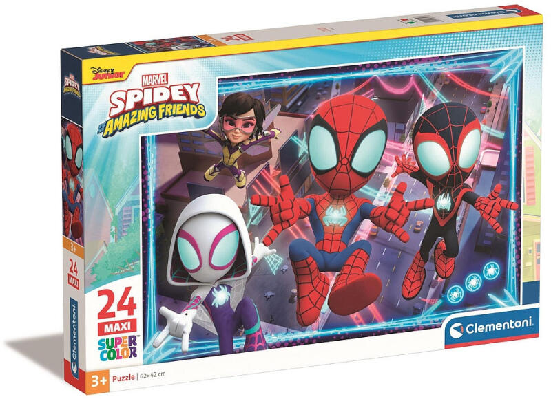Spiderman, Pókember 24 db-os maxi puzzle Clementoni Mérete: 62x42 cm Doboz mérete: 28.1 x 37 x 5.5 cm - SuperColor kollekció - kiváló minőség - 3 éves kortól ajánlott
