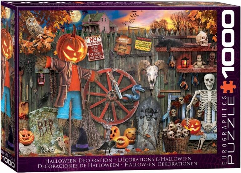 Az EuroGraphics kirakók sokszínűségükről ismertek és igen széles választékban kaphatóak. Hagyományos képi témáik mellett különlegesebb, városokat és nevezetességeket ábrázoló kirakókat is találunk kínálatukban. Az EuroGraphics 1000 db-os puzzle - Halloween Decorations (6000-5653) című képen egy csodálatos halloween-i dekoráció látható.