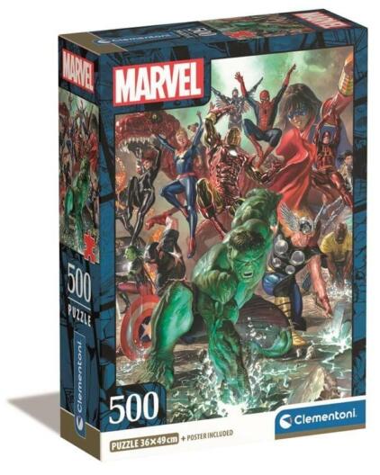 Az olasz Clementoni kirakók kiváló minőségű, strapabíró darabokból készülnek, a puzzle széles választékban kapható minden korosztályt megcélozva. A Clementoni 500 db-os puzzle COMPACT puzzle - Marvel hősök harcra készen (35546) kirakó képén Marvel hősök hada látható.