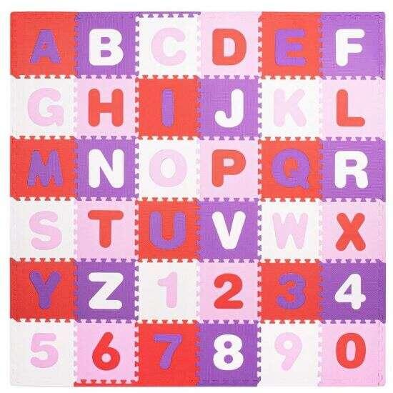 Habszivacs szőnyeg gyerekeknek, EVA rózsaszín és lila, ábécé minta és számok, 172x172x1cm, SpringosHab puzzle szentelt csecsemőknek . Az összecsukás nagyon egyszerű és intuitív - minden gyermek képes kezelni. A szőnyeg segít az idősebb gyermekeknek betűket tanulni és felismerni a formákat, fejleszteni az általános vizuális és motoros koordinációs készségeket és a log