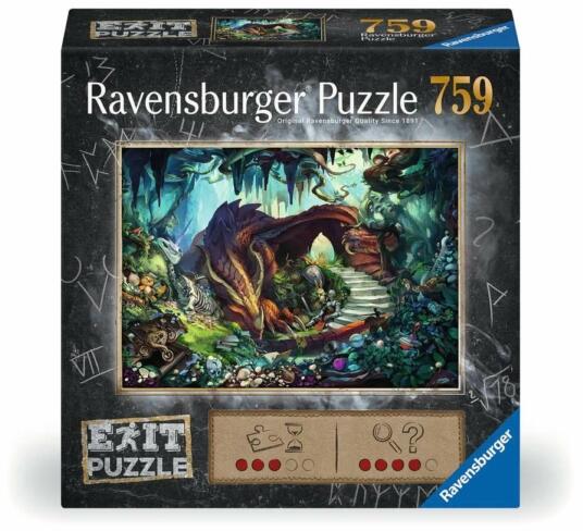 Ravensburger 759 db-os Exit puzzle - A sárkánybarlangban (17366) A Ravensburger Exit puzzle elhozza neked a szabadulószobák izgalmát! Olvasd el a történetet, rakd ki a képet és oldd meg a rejtélyes feladványokat! Ha elakadsz, a QR kód beolvasásával segítséget kaphatsz, a végső megfejtést pedig a boríték rejti. A titkokkal átszőtt illusztráció a játékost egy rejtélyes vi