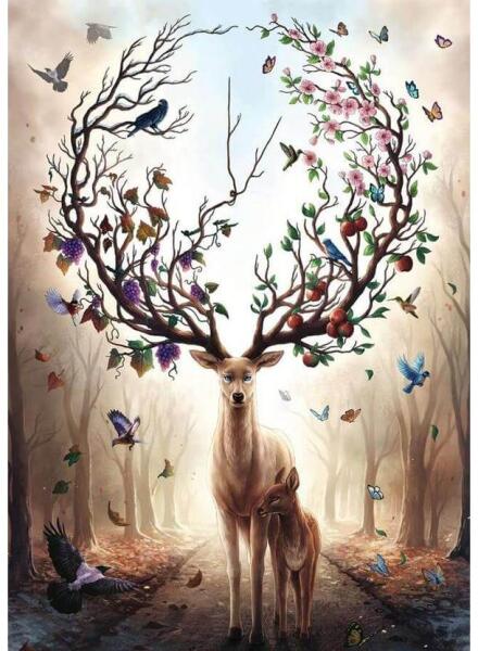 A Ravensburger a világ legnagyobb puzzle gyártója. Széles választékban kapható kirakói a minőséget és a sokszínűséget képviselik. A Ravensburger 1000 db-os - Csodaszarvas című képén egy csodaszép szarvas látható, akinek az agancsán megelevenednek a természet szépségei.