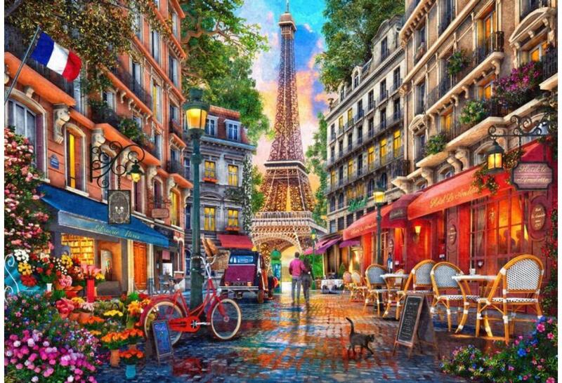 A francia Bluebird 2019 óta van jelen a kirakók világpiacán. Magas minőségű, környezettudatos technológiával készült, mégis megfizethető áron elérhető puzzle képei közt elsősorban művészi alkotások találhatók. Az 1000 db-os Bluebird puzzle - Paris Street című képén egy párizsi utcán találjuk magunkat, ahol kávézók és hangulatos üzletek között andaloghatunk az