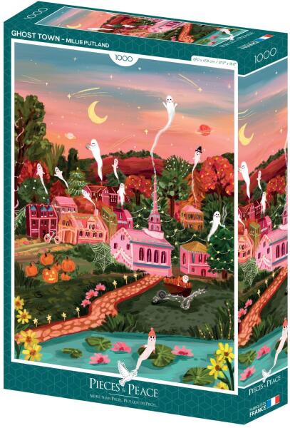 1000 darabos kirakó . Márka: Pieces & Peace Művész: Millie Putland Kirakott kép méret: 47.8 x 69 cm Doboz méret: 35,5 x 24 x 5,5 cm Eredeti cím: Halloween Town GTIN: 3667232001433