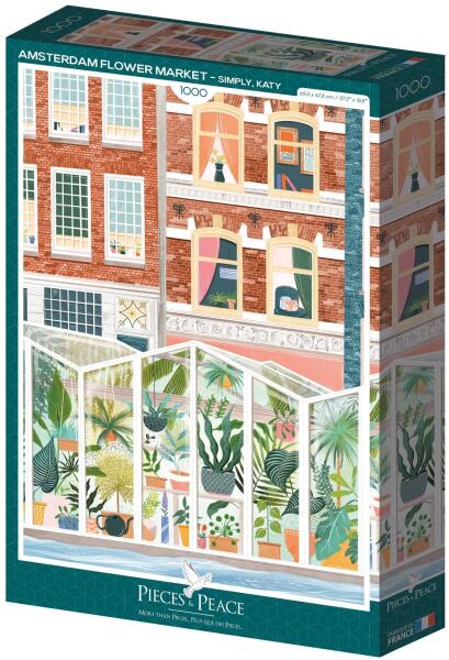 1000 darabos kirakó . Márka: Pieces & Peace Művész: Simply, Katy Kirakott kép méret: 69 x 47,8 cm Doboz méret: 35,5 x 24 x 5,5 cm Eredeti cím: Amsterdam Flower Market GTIN: 3770001400815