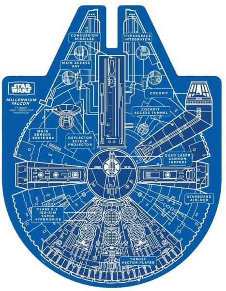 1000 darabos kirakó Különleges henger alakú dobozban. Egyedi alakú kirakó. Kétoldalas. Márka: Ridley's Games Művész: Lucasfilm Kirakott kép méret: 61,7 cm átmérő Doboz méret: kb. 11,5 x 11,5 x 30,5 cm Eredeti cím: Millennium Falcon GTIN: 0810073341784