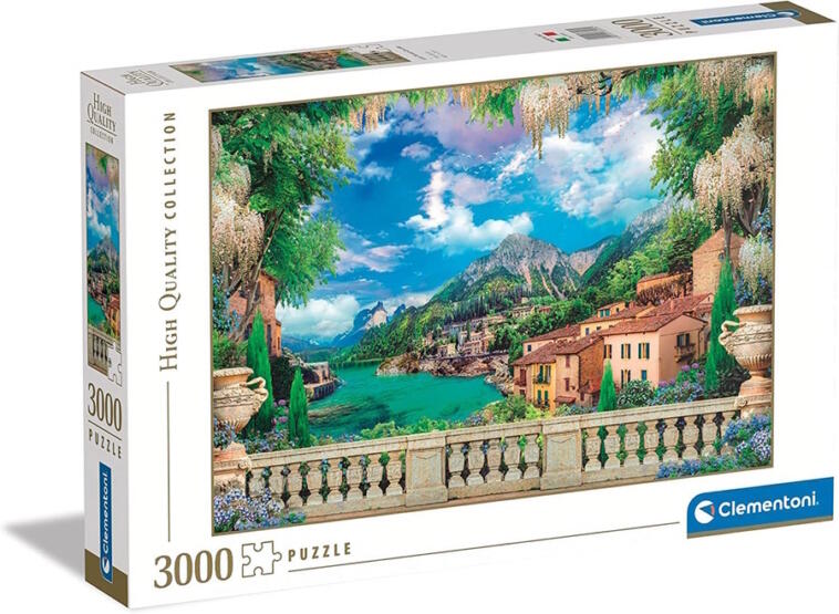 Az olasz Clementoni kirakók kiváló minőségű, strapabíró darabokból készülnek, a puzzle széles választékban kapható minden korosztályt megcélozva. A Clementoni 3000 darabos puzzle - High Quality Collection - Buja terasz a tóparton (33553) képén egy idilli hegyvidéki tó látható, melyet szebbnél szebb villák és teraszok öveznek, a háttérben magas hegycsúcsokkal.