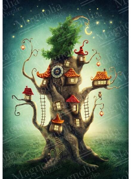 A Magnolia Puzzle az ALB Company márkaneve, amelyet 2020-ban alapítottak Izmirben. Termékei magas minőséggel, kiváló vágási technikával, matt és bársonyos felülettel, valamint exkluzív képekkel tűnnek ki. Világhírű művészek alkotásai teszik egyedivé kirakóikat. A Magnolia 1000 db-os puzzle - Magic Tree House (2337) kirakó képén egy varázslatos fa látható.