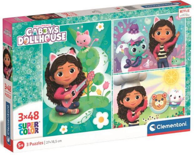 Gabi babaháza Supercolor 3x48db-os puzzle - Clementoni Hivatalos magyarországi forgalmazótól. Leírás: Válassz egy olyan puzzlet az öt év körüli gyermeked számára, ami három különféle képet is tartalmaz a kicsik kedvenc meséjéből, a Gabi babaháza című sorozatból. A puzzle ideális választás a gyerekeknek, hiszen a képek kirakása közben remekül fejlődik a kicsik türe