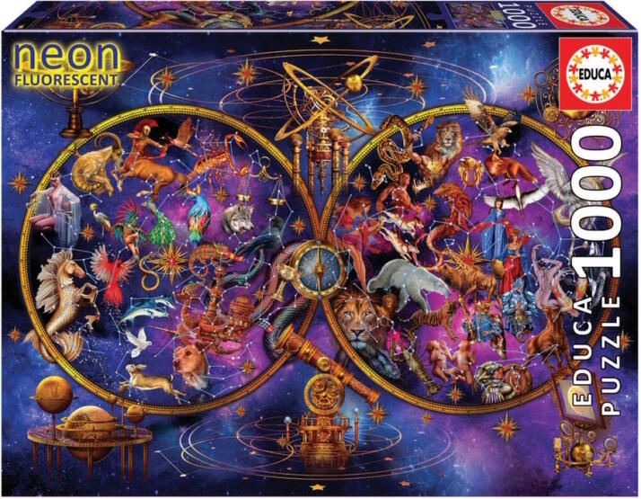 Az Educa kiváló minőségű és újrahasznosítható, környezetbarát alapanyagokat használ kirakói készítése során. Abban az esetben, ha a puzzle kirakása során elvesztettünk egy darabot, az Educa - egyedülálló módon - ingyen elpostázza a hiányzó darabot, hogy garantáltan befejezhessük munkánkat. Az Educa 1000 db-os Neon puzzle - Csillagjegyek konstellációja című képén