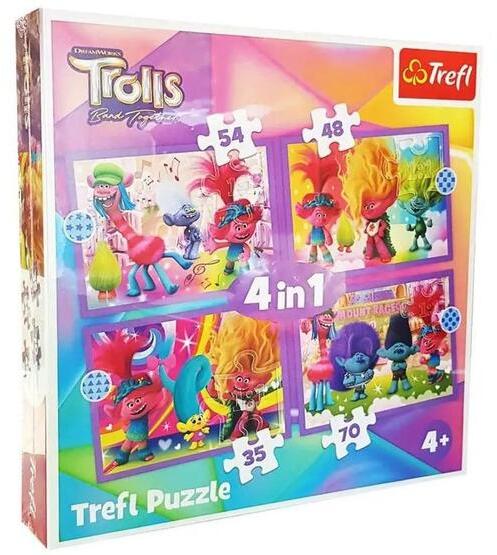 A Trefl kirakók kiváló minőségű, speciális fényvisszaverő papír felhasználásával, ökológiai anyagból készülnek, amely megkönnyíti az összeillesztést. A Trefl 4 az 1-ben puzzle - Trollok képein a népszerű és varázslatos animációs film főszereplői láthatók.