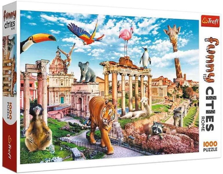 Járd be a világot a Trefl prémium minőségű kirakóival akkor, amikor csak kedved tartja. Ismerd meg például a híres olasz város, Róma nevezetességeit, miközben kirakod ezt az 1000 darabos puzzle-t. De hékás, valami nincs rendben a várossal! Mit keres a Forum Romanum tetején egy pingvin, és hogy kerül erre a római útra egy tigris? A Trefl kirakók vicces városai közül most R