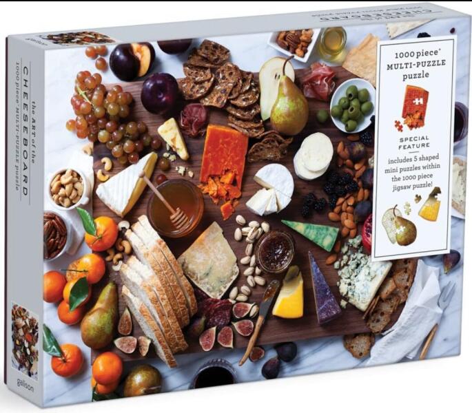 1000 darabos kirakó Különleges, rejtett formákat tartalmazó kirakó!Gyárilag fólia és leragasztás nélkül készült. Márka: Galison Művész: Julie Seabrook Kirakott kép méret: 68.58 x 50.8 cm Doboz méret: 29 x 20,5 x 5 cm Eredeti cím: The Art of the Cheeseboard GTIN: 9780735372726