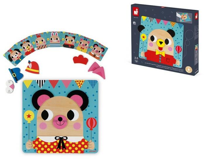1 tábla, 7 kártya és 30 mágneses darabból áll ez az első képkirakós puzzle játék a Janodtól.