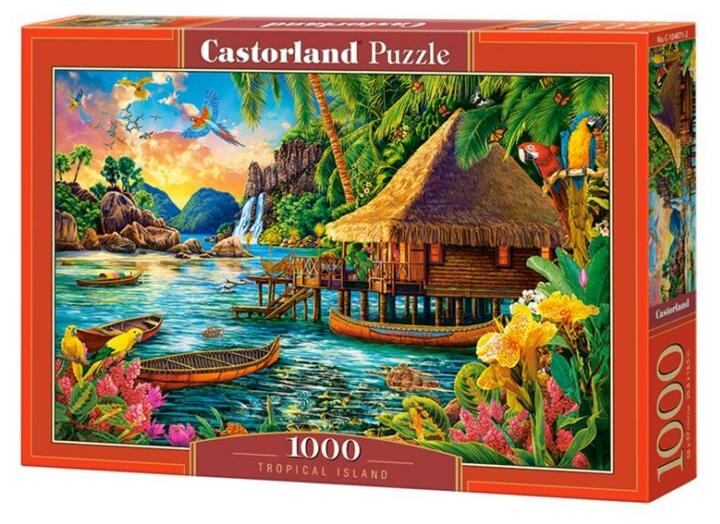 A Castorland kirakók sokszínűségükről ismertek és igen széles választékban kaphatóak. Hagyományos képi témáik mellett különlegesebb, városokat és nevezetességeket ábrázoló kirakókat is találunk kínálatukban. A Castorland 1000 db-os puzzle - Trópusi sziget című képen egy csodálatos színekben pompázó sziget és élővilága látható.