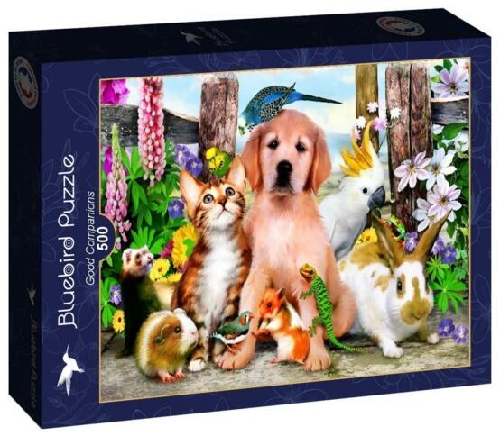 A francia Bluebird vállalat 2019-ben lépett piacra kiváló minőségű kirakóival, megfizethető áron. Fontos szempont számukra a környezettudatosság is, ezért kirakóik dobozait úgy tervezték, hogy minimális mennyiségű kartont használjanak fel a gyártás során. A Bluebird 500 db-os puzzle - Good Companions című képén egy igazán színes baráti társaság látható. Ebben a c