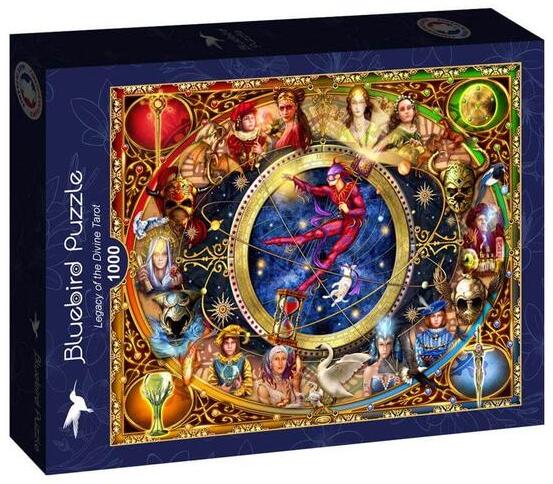 A francia Bluebird 2019 óta van jelen a kirakók világpiacán. Magas minőségű, környezettudatos technológiával készült, mégis megfizethető áron elérhető puzzle képei közt elsősorban művészi alkotások találhatók. Az 500 db-os Bluebird puzzle - Legacy of the Divine Tarot című képén a tarot szimbólumai kelnek életre.