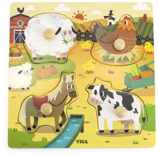 A puzzle-darabok fából készült csapokkal vannak ellátva, amelyek megkönnyítik a gyermek számára, hogy a puzzle-t a kezébe fogja és a megfelelő helyre helyezze a fa alapon. Ez az egyik legjobb módja a koncentráció és a szem-kéz koordináció gyakorlásának. Ez a játék segít fejleszteni a gyermek motorikus készségeit és logikus gondolkodását, mivel a játékot a tanulással