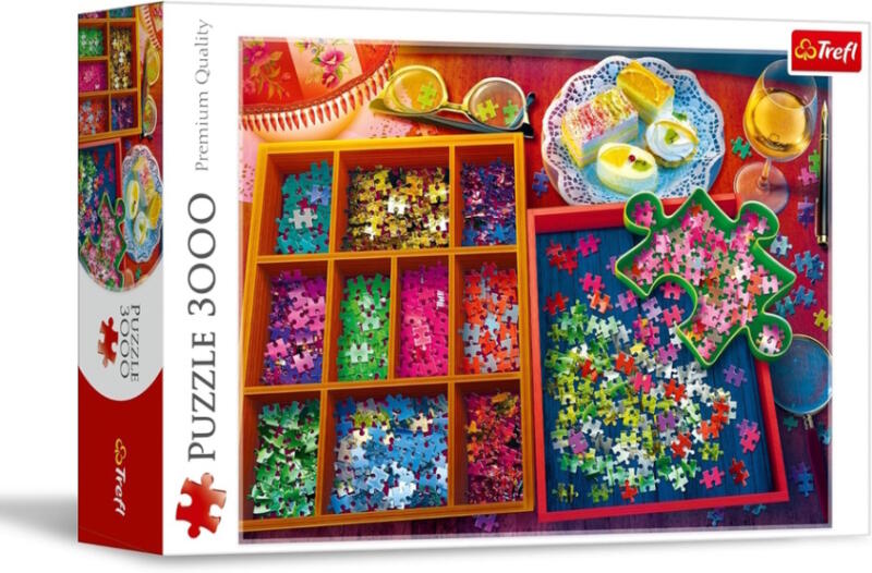 A Trefl kirakók kiváló minőségű, speciális fényvisszaverő papír felhasználásával, ökológiai anyagból készülnek, amely megkönnyíti az összeillesztést. A Trefl 3000 db-os puzzle - Rejtvényes est képén lélegzetelállítóan színes kirakó darabok láthatók, melyek éppen arra várnak, hogy egyetlen csodás képpé álljanak össze.