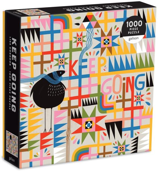 1000 darabos kirakó . Márka: Galison Művész: Lisa Congdon Kirakott kép méret: 50,8 x 68,5 cm Doboz méret: 20,5 x 20,5 x 6,4 cm Eredeti cím: Keep Going GTIN: 9780735368460