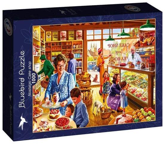 A francia Bluebird 2019 óta van jelen a kirakók világpiacán. Magas minőségű, környezettudatos technológiával készült, mégis megfizethető áron elérhető puzzle képei közt elsősorban művészi alkotások találhatók. Az 1000 db-os Bluebird puzzle - Nostalgic Cake shop című képén egy nosztalgikus hangulatú cukrászda mindennapjaiba kapunk betekintést. Szebbnél szebb sütem