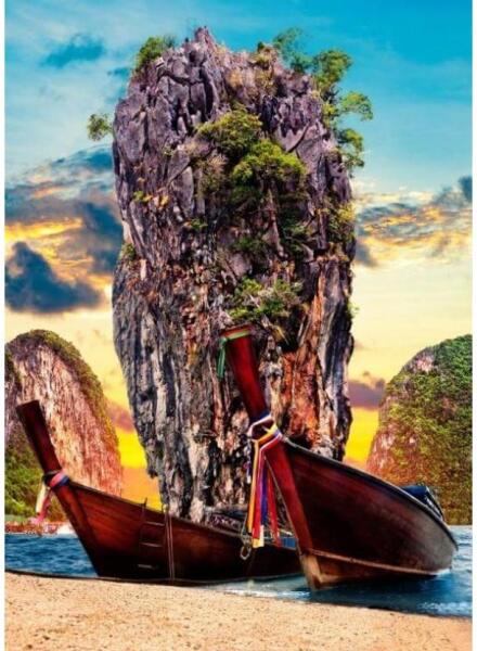 A francia Bluebird 2019 óta van jelen a kirakók világpiacán. Magas minőségű, környezettudatos technológiával készült, mégis megfizethető áron elérhető puzzle képei közt elsősorban művészi alkotások találhatók. Az 1500 db-os Bluebird puzzle - Phuket, Thailand című képén az ikonikus tengerpart látható két csónakkal. Thaiföld legnagyobb szigete, Phuket jól ismert é