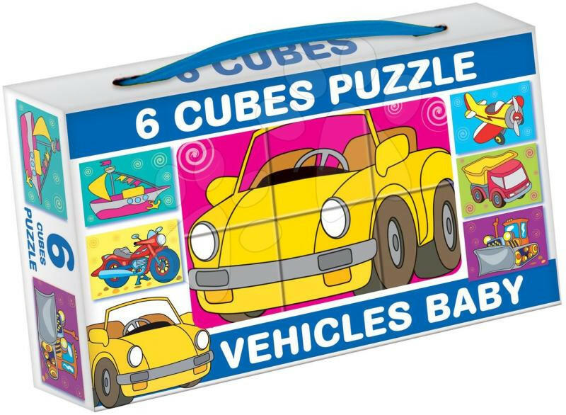 Játékkockák gyerekeknek európai minőségben. Összesen hat gyönyörű motívummal különböző vidám járművekről, mint személyautó, motorkerékpár, repülő és további hasonlók. Hogy könnyen kezelhetők legyenek, méretük elégségesen nagy. A csomagolásban 6 színes játékkocka található, teljes méret 19*12*5 cm. Játszás képes kockákkal szórakoztató módon fejleszti