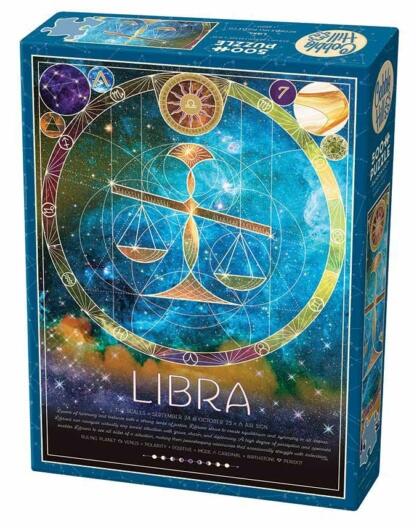 A kanadai Cobble Hil l a nosztalgikus, színes, és mindemellett kiváló minőségű kirakókkal kívánja örvendetessé tenni a játék élményt kicsiknek és nagyoknak egyaránt. Ezen a Cobble Hill 500 db-os puzzle - Libra (45017) kirakón a Mérleg csillagjegy látható. A harmónia és az egyensúly szerelmesei, erős igazságérzettel, minden téren egyensúly és szimmetria megteremtésé